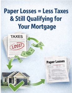 FYI We have mortgage programs for self-employed borrowers and also real estate investors that do not use the tax returns at all to verify income. Call me after the show and we can explore how these loans can work for you.
